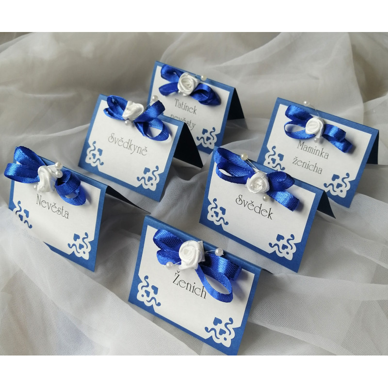 Svatební jmenovky - modré ornamenty