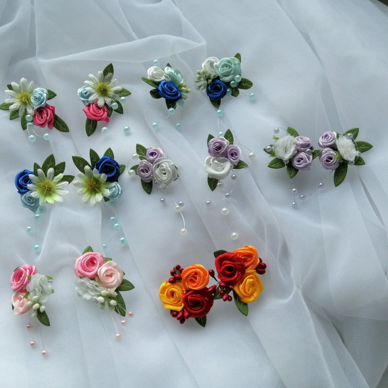 Náramek z látkových květin.