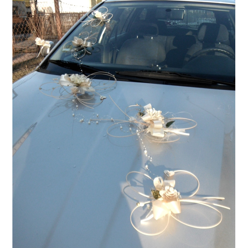 Sada motýlů z ratanu určená k dekoraci auta. Sada obsahuje 5 motýlů různé velikosti - dozdobenými dřevěnými květy ,stuhami a perličkami v ivory odstínech. Součástí jsou průhledné přísavky pro přichycení k autu.