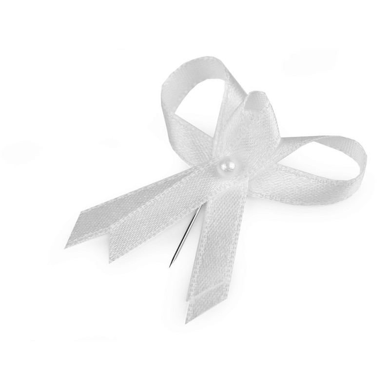 Svatební mašlička slouží ke svatebním účelům. Využijete je k ozdobení klopy ženicha a svatebčanů. Skládá se ze dvou saténových stuh o šíři 6 mm, perličky a špendlíku. Mašličku můžete použít také k aranžování různých svatebních dekorací.
