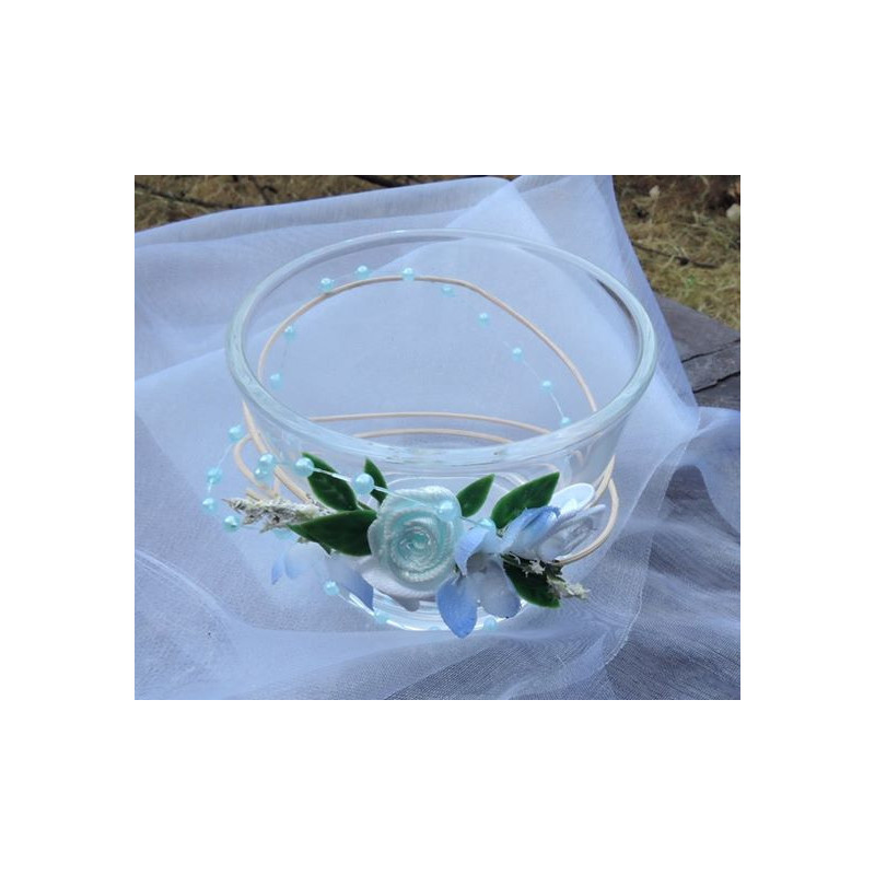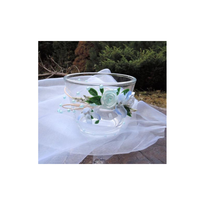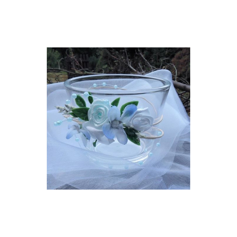 Skleněný svícínek "ve svatebním" v modro bílé . Dle možností barva na přání.