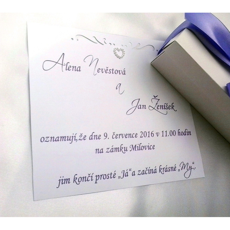 Speciální svatební oznámení pro Vaše nejmilejší hosty v pevné papírové krabičce. Doporučujeme pokud předáváte oznámení osobně.