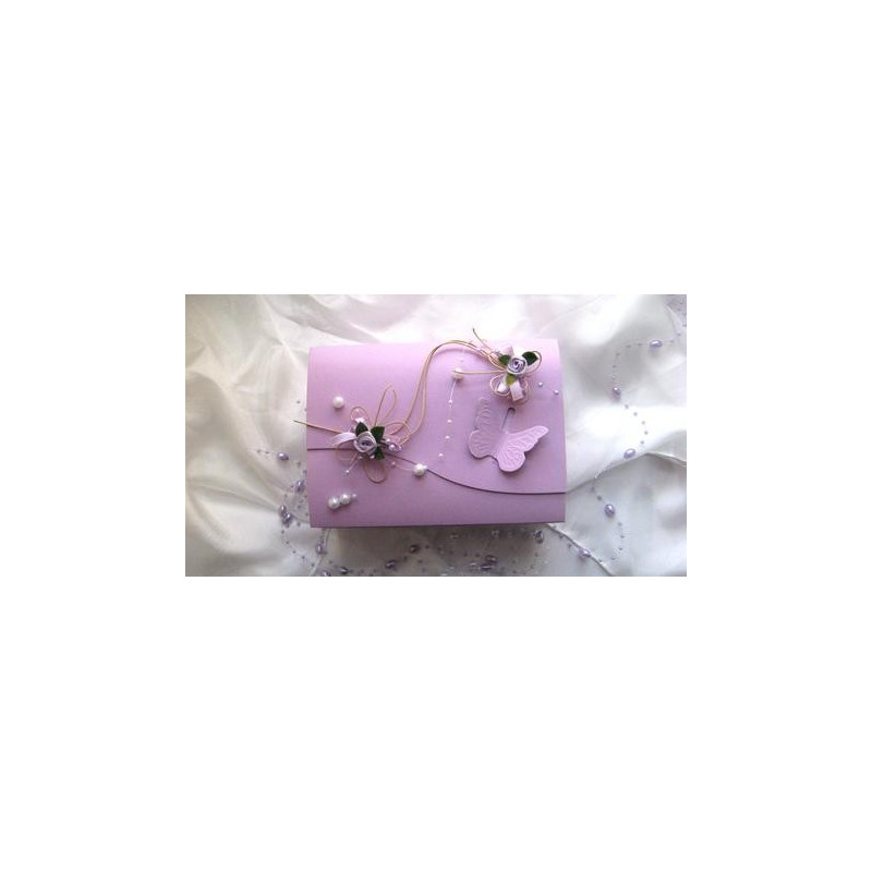 Papírová krabička na výslužku ozdobená látkovými květy,ratanóvými motýlky a umělým buxusem. Velikost 18x13x8 cm. Krabička je bílá.