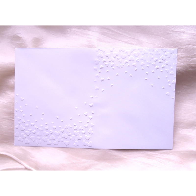 Bílá embosovaná obálka o rozměru 19,5 x 12,5 cm vhodná pro oznámení s 3D zdobením.