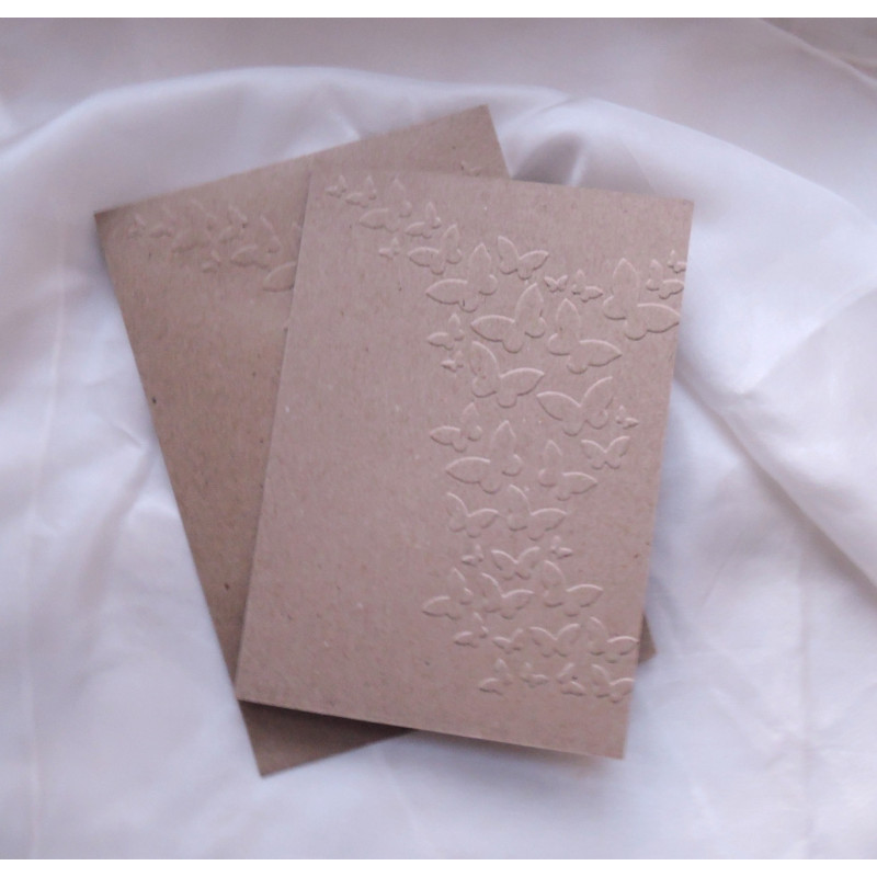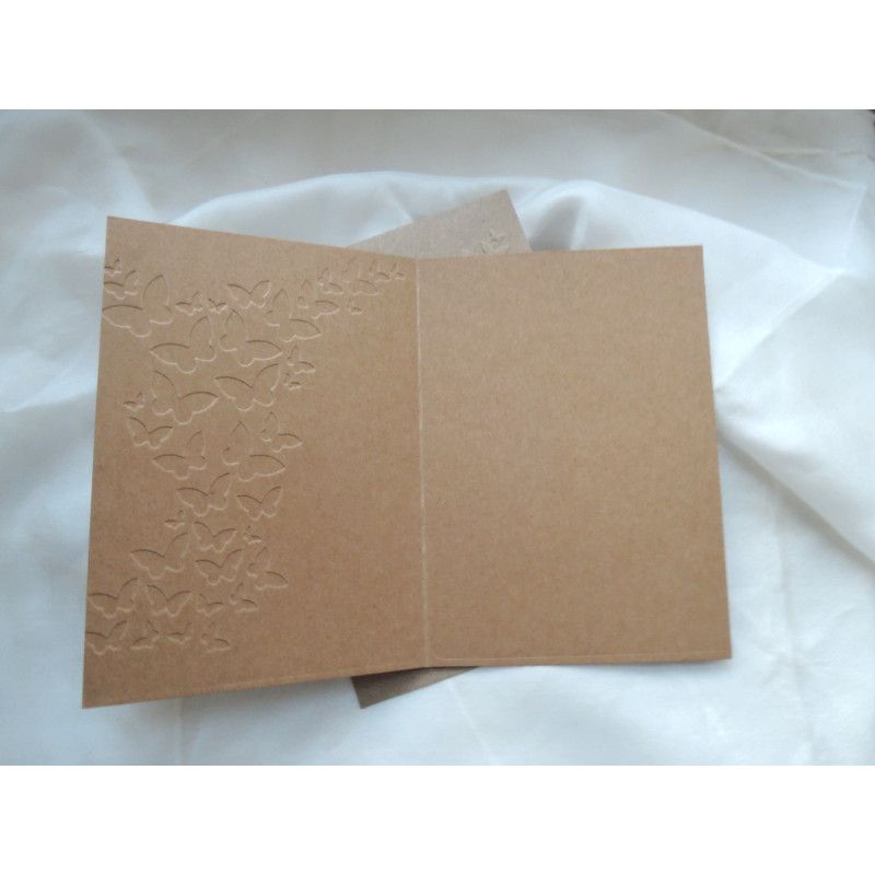 Embosované kraftové svatební oznámení o rozměrech 10x14,5 cm s embosovanou obálkou. Nevyplněné, určené k vlastnímu dotvoření.