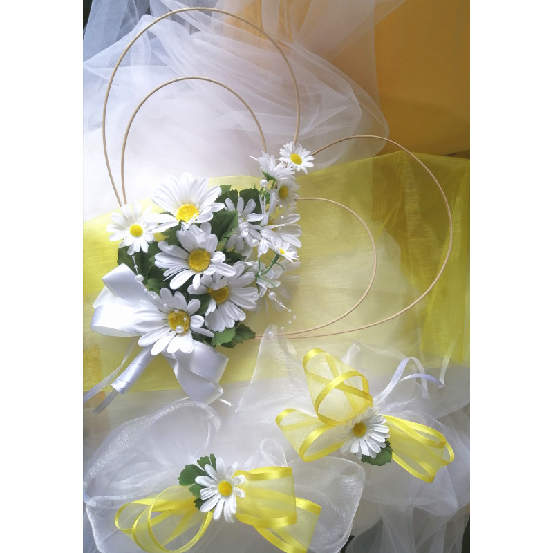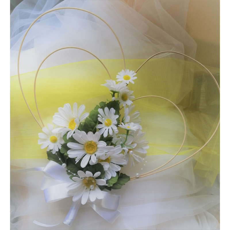 Ratanové srdíčko na auto zdobené umělými kopretinami. Velikost cca 40x40cm. Srdce má na sobě přísavky.