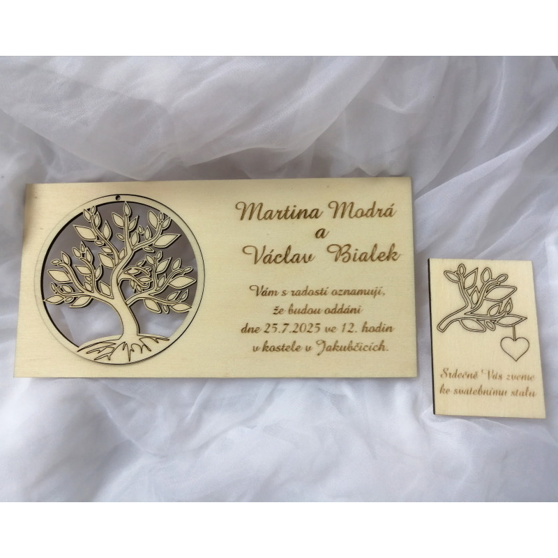 Dřevěné svatební oznámení - se stromem života