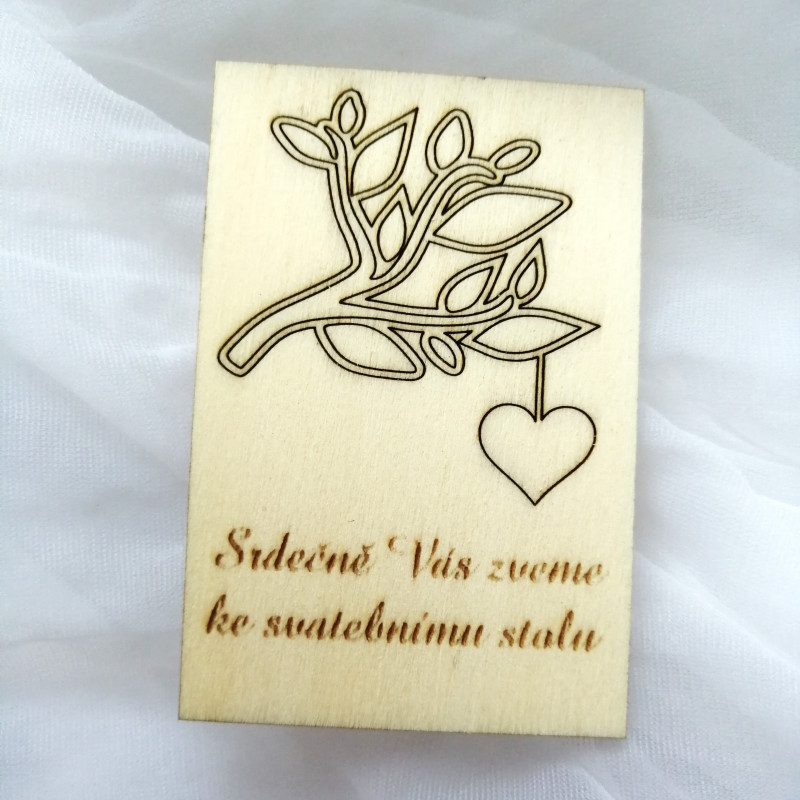 Dřevěná svatební pozvánka ke stolu