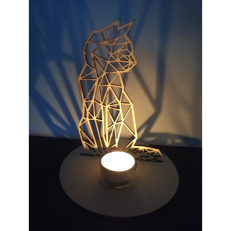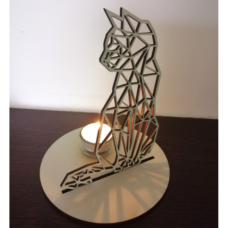 Svícen s geometrickou kočkou vyřezaný z kvalitní 4mm překližky,